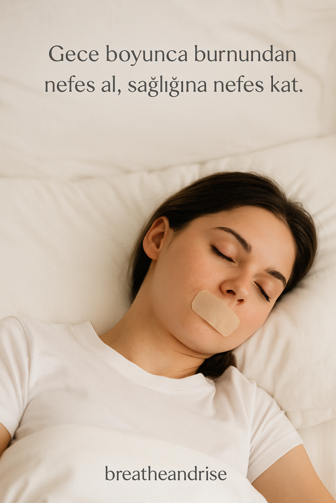 Ağız bandı sadece horlamayı azaltmak için değil, nefesin doğal yoluna dönmesi için güçlü bir araç. Gece boyunca doğru nefes almak; dişlerden beyne, kalpten ruh haline kadar sağlığın her alanına dokunuyor.