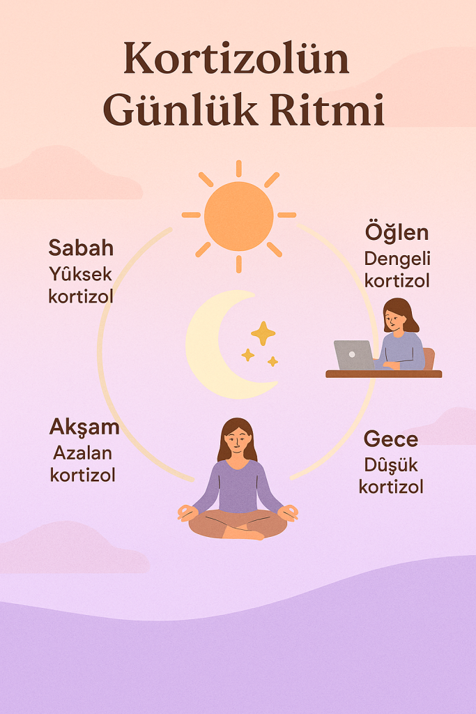 - Öğle – Akşam: Yavaş yavaş azalır → sakinleşmemizi sağlar.